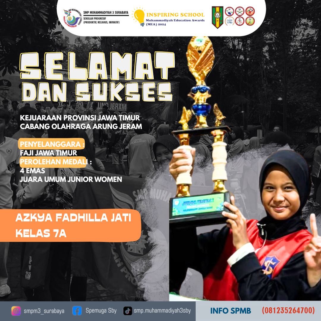 Read More: Dayung Progresif Kembali Torehkan Prestasi SP3MUGAsmpmtsmusby.com – Sekolah Sabtu Dayung SMP Muhammadiyah 3 Surabaya kembali menorehkan prestasi. Azkya Fadhillah Jati, perwakilan dari Atlit Dayung kelas Pro SP3MUGA SBY berhasil membawa…